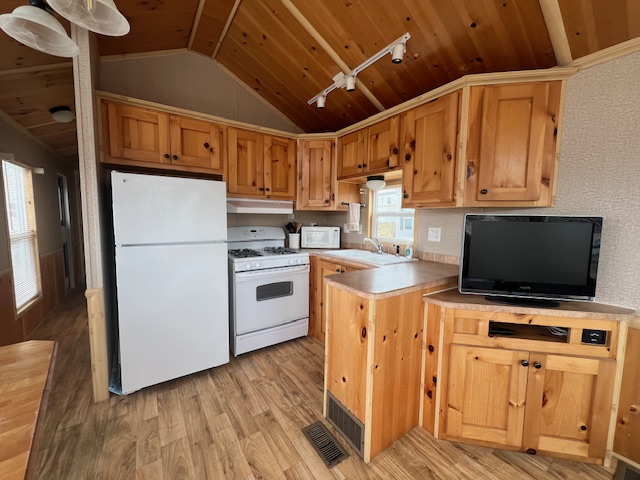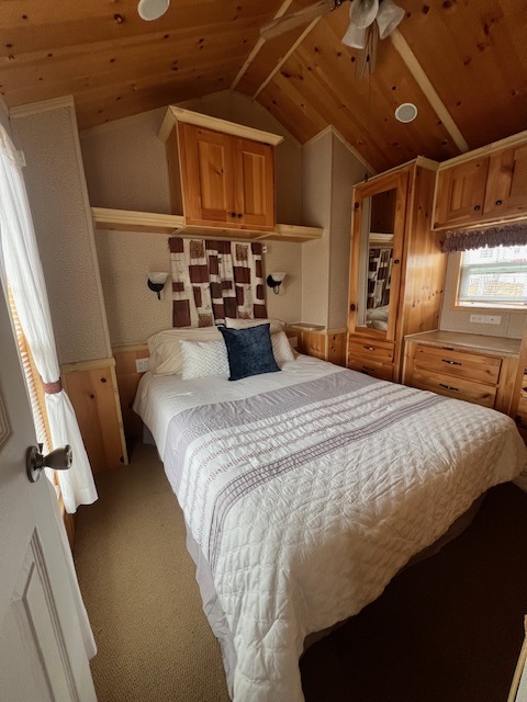 A rare opportunity to own a 2-bedroom cottage at an exceptional value—perfect for creating lasting memories with family and friends. The home features a primary bedroom with a full-size bed and a second bedroom currently set up with bunk beds, ideal for kids or grandkids. Comfortably equipped with A/C, a full bath, and all kitchen appliances, this cottage also offers a front deck with lovely lake views—perfect for relaxing summer days. Offered turnkey, with furnishings available subject to negotiation. Previously owned and maintained by the resort, this home has been thoroughly cared for by our Facilities team, providing added confidence for its next owner.